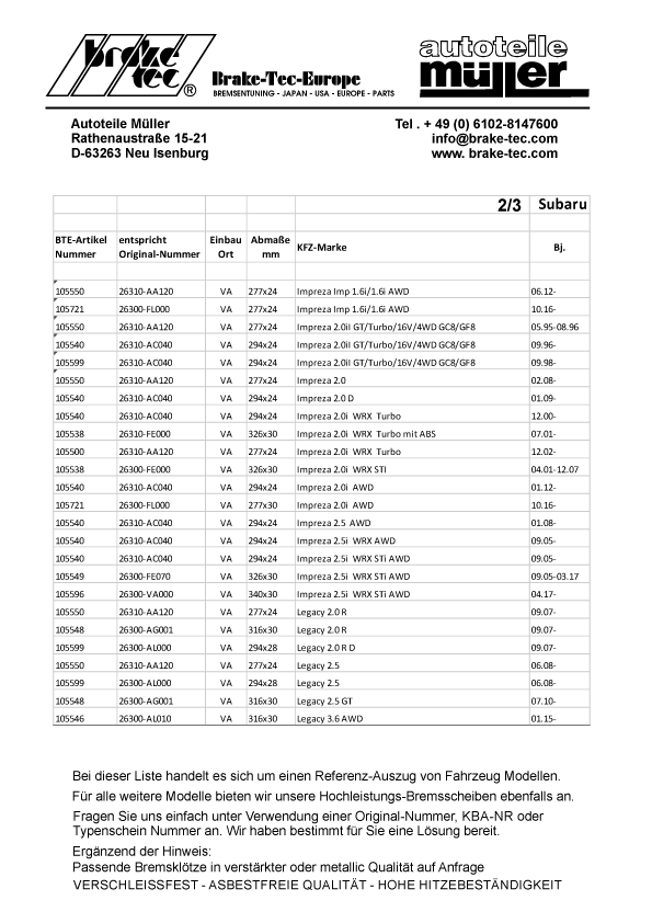 Neu Isenburg • • Tel: +49 (0) 6102 - 8147 600 • Fax: +49 (0) 6102 - 8147 6010 • • info@brake-tec.com • Impressum / Haftungsausschluss / Datenschutzerklärung • |